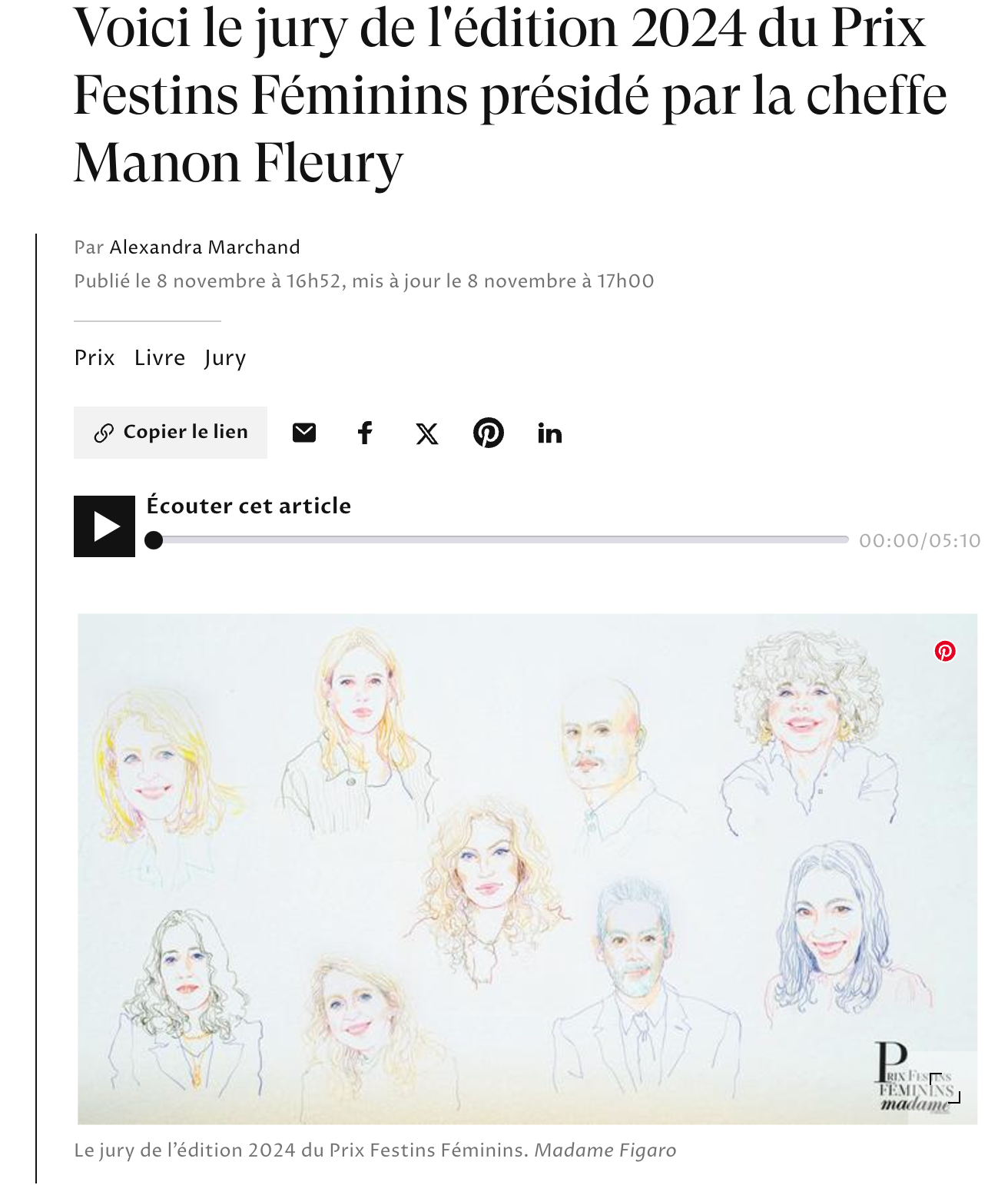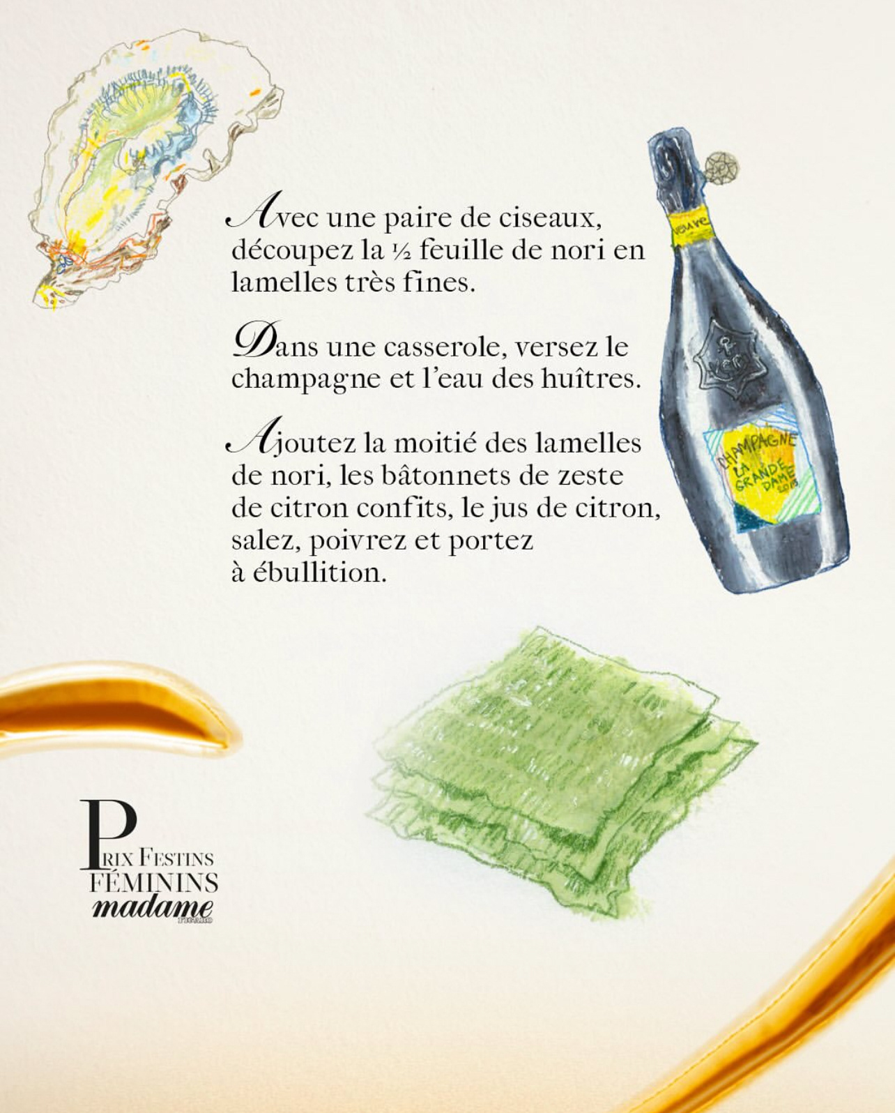 A series illustrations in honor of the Festins Féminins Award, based on a selection of the most beautiful cookbooks published in 2024 written by women. Illustrated the portraits of the 9 members of Jury and various drawings inspired by the winner's recipe.