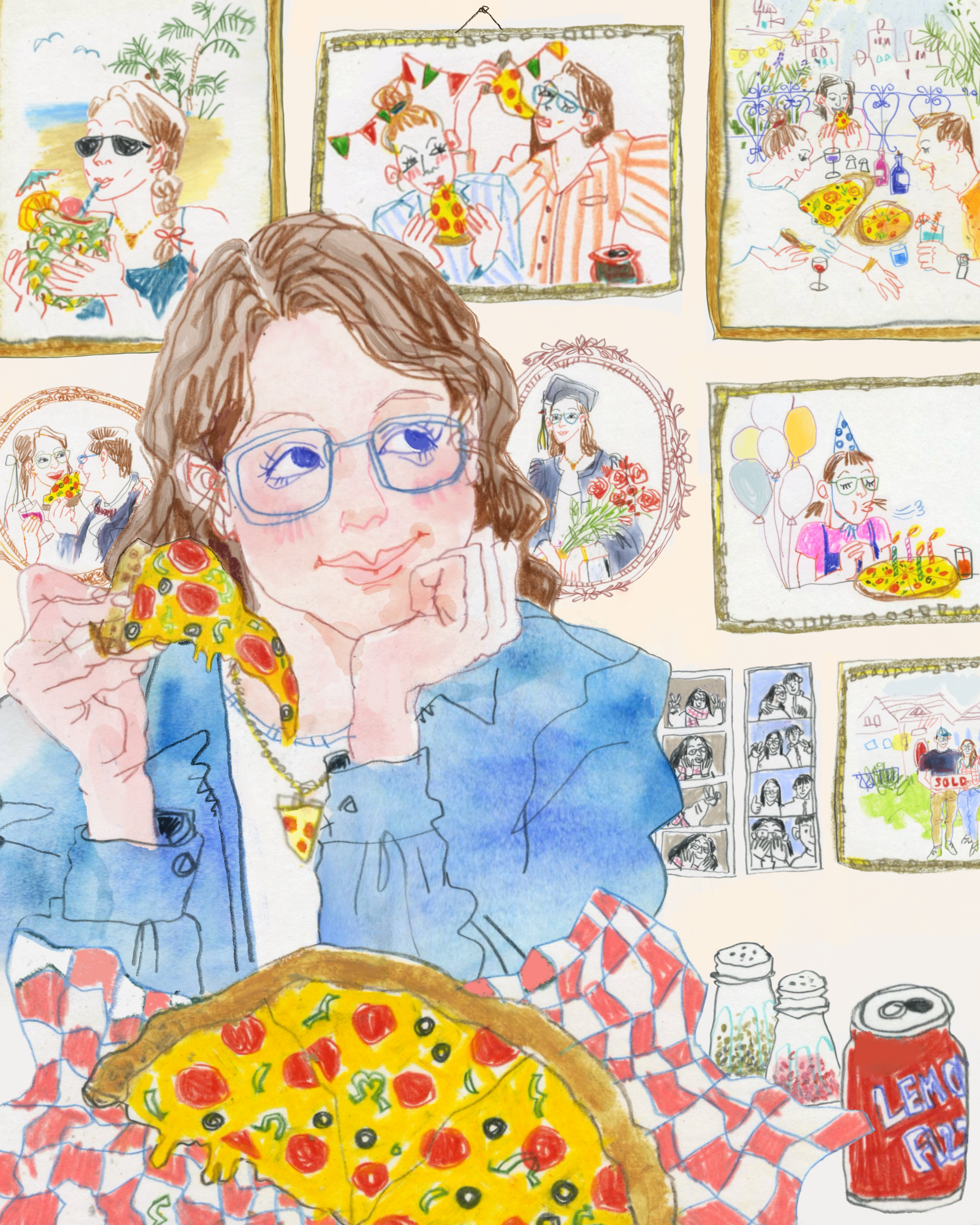 A header illustration for The Gullet, a weekly publication of food stories, following a personal article about the importance of pizza over one's lifetime.